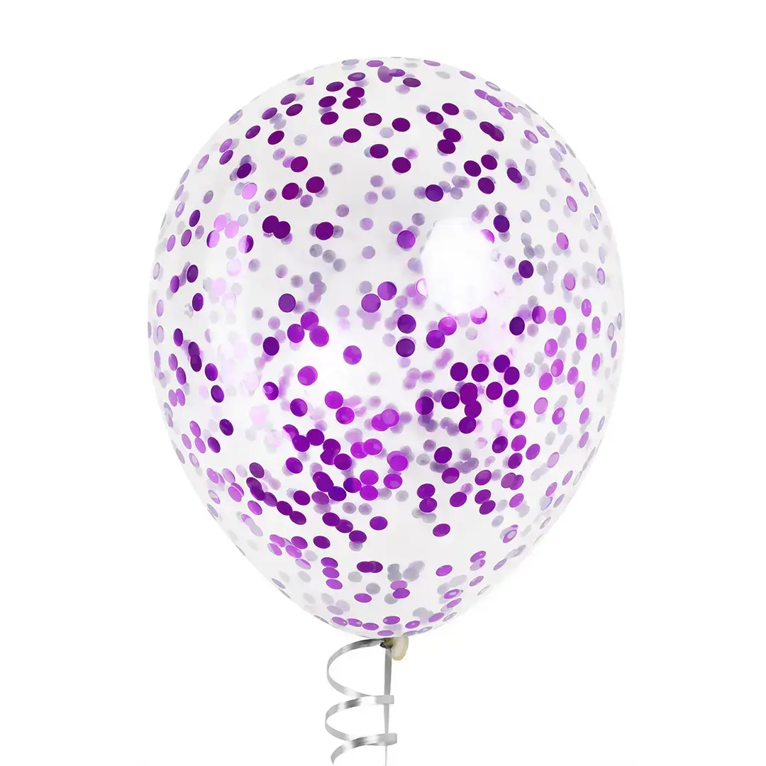 Шары с фиолетовым конфетти привезем уже в надутом виде на лентах закрученных в «серпантин».
