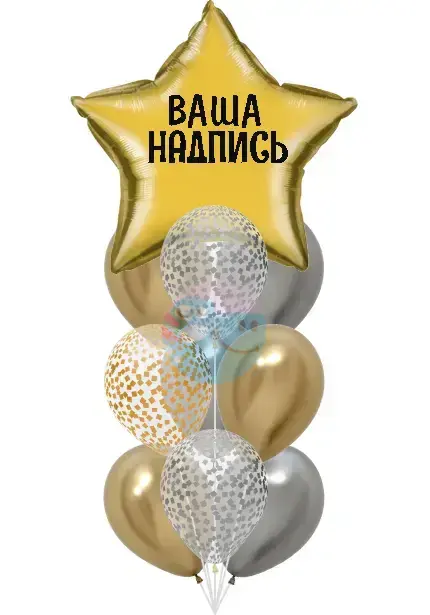 Шары закреплены на утяжелителе — при необходимости их можно распустить под потолок. Фонтан «Блеск» с надписью доставим в защитном пакете (сохранит чистоту и обережет от влаги при перевозке).