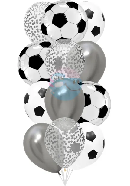 Шары закреплены на утяжелителе — при необходимости их можно распустить под потолок. Фонтан «Футбол» доставим в защитном пакете (сохранит чистоту и обережет от влаги при перевозке).