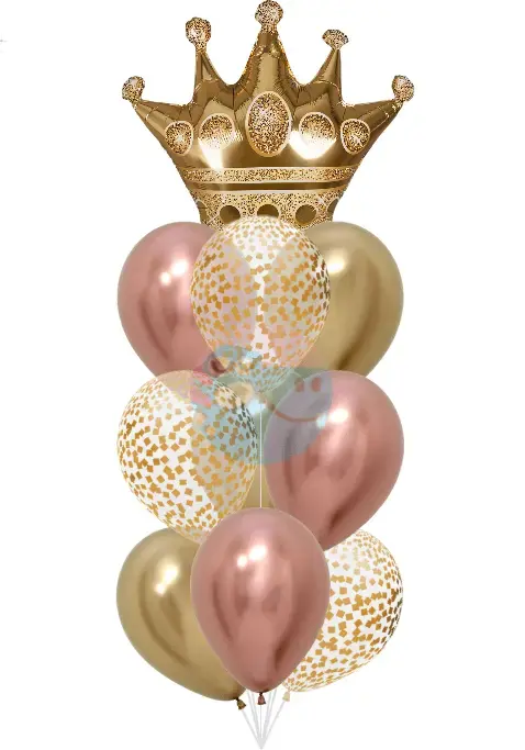 Шары закреплены на утяжелителе — при необходимости их можно распустить под потолок. Фонтан «Корона» доставим в защитном пакете (сохранит чистоту и обережет от влаги при перевозке).