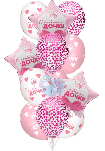 Шары в наборе привязаны к грузу и упакованы в прозрачный пакет. Шарики в фонтане можно распустить под потолок при необходимости.