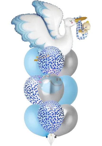 Шары в наборе привязаны к грузу и упакованы в прозрачный пакет. Шарики в фонтане можно распустить под потолок при необходимости.