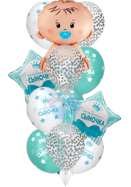 Шары в наборе привязаны к грузу и упакованы в прозрачный пакет. Шарики в фонтане можно распустить под потолок при необходимости.