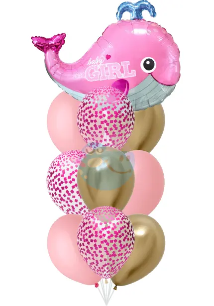 Фонтан на выписку с розовым китом из 10 воздушных шаров с гелием