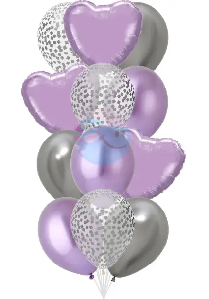 Шары закреплены на утяжелителе — при необходимости их можно распустить под потолок. Фонтан «Сирень» доставим в защитном пакете (сохранит чистоту и обережет от влаги при перевозке).