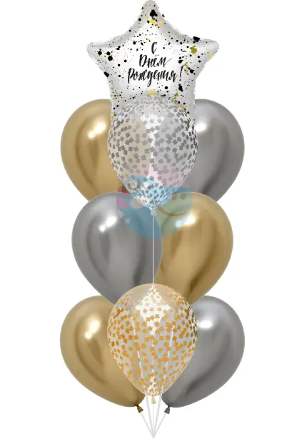 Шары закреплены на утяжелителе — при необходимости их можно распустить под потолок. Фонтанчик «Блеск ДР» доставим в защитном пакете (сохранит чистоту и обережет от влаги при перевозке).