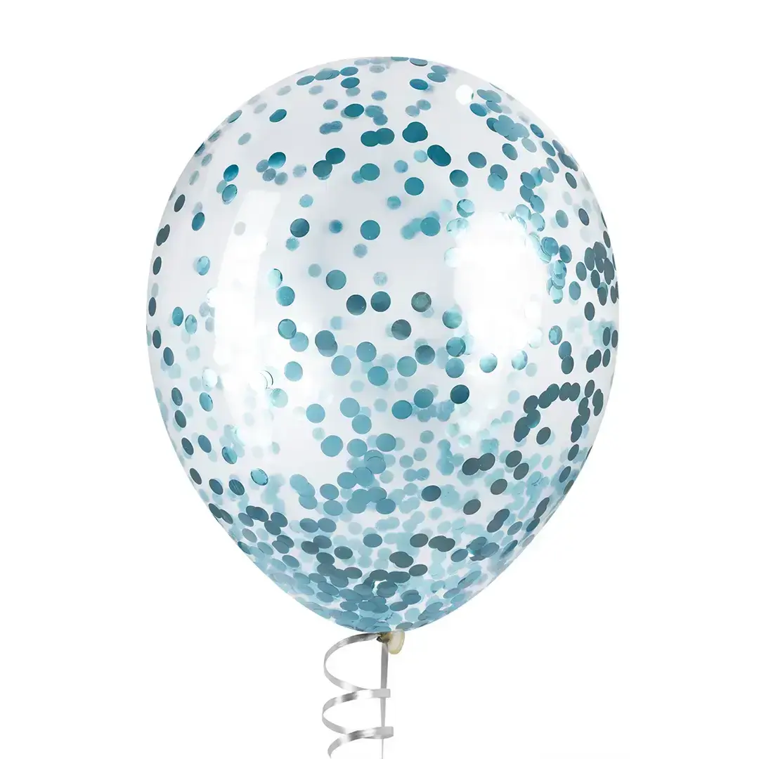 Шары с голубым конфетти привезем уже в надутом виде на лентах закрученных в «серпантин».
