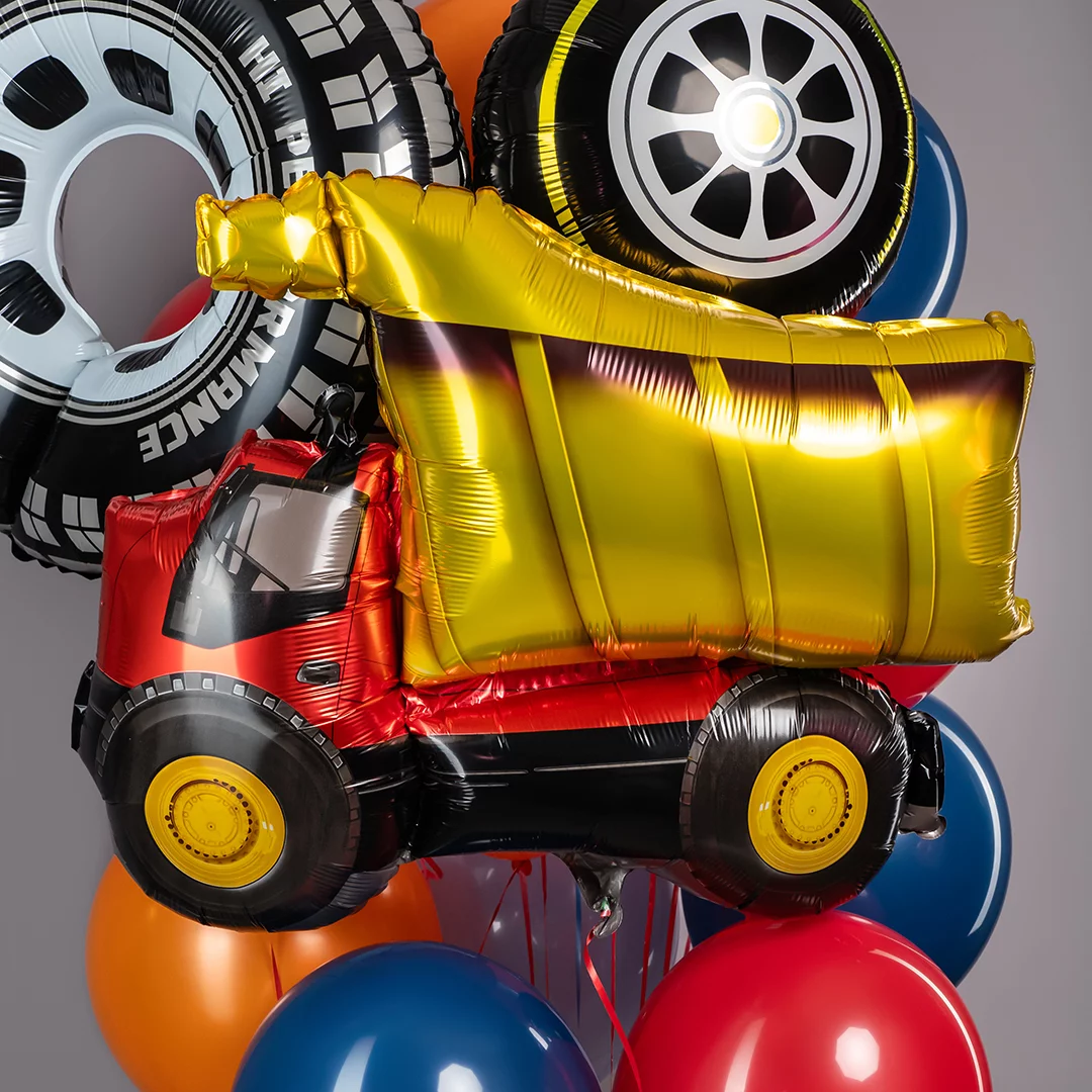 Cамосвал - шар! Весело, ярко и очень празднично! Размер фигуры — целых 81 см!, он точно привлечёт внимание гостей. Гелий уже внутри — просто достаньте фигуру, разверните и наслаждайтесь видом! Яркий подарок детям и взрослым, украшение праздника и просто хорошее настроение гарантированы!