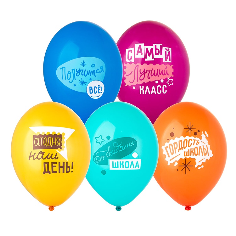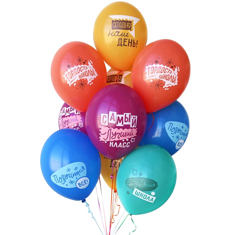 Микс шаров «Выпускной» привезем уже в надутом виде на лентах закрученных в «серпантин».